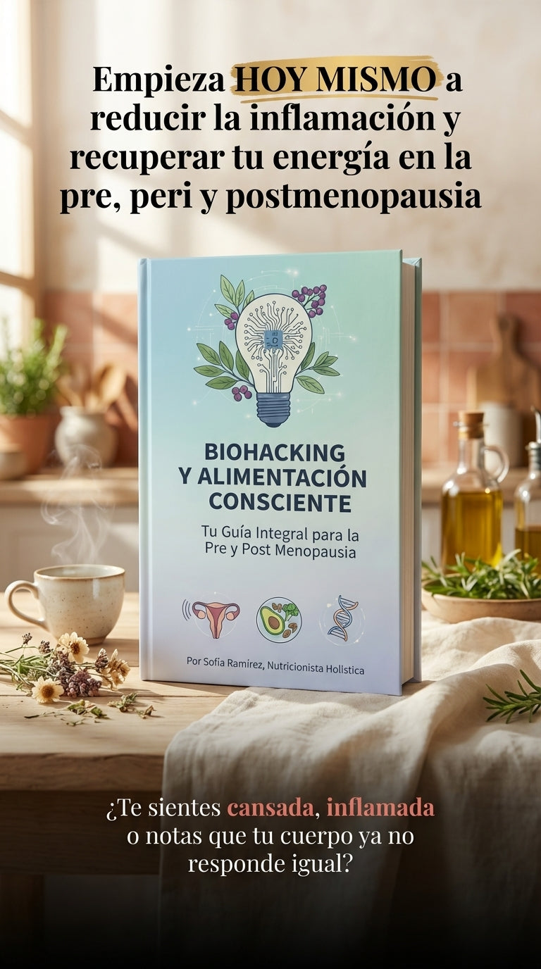 En esta guía, el biohacking se aplica de forma sencilla y práctica: pequeñas estrategias relacionadas con la alimentación, los hábitos diarios y la nutrición que ayudan a optimizar la energía, reducir la inflamación y mejorar el descanso de forma natural.